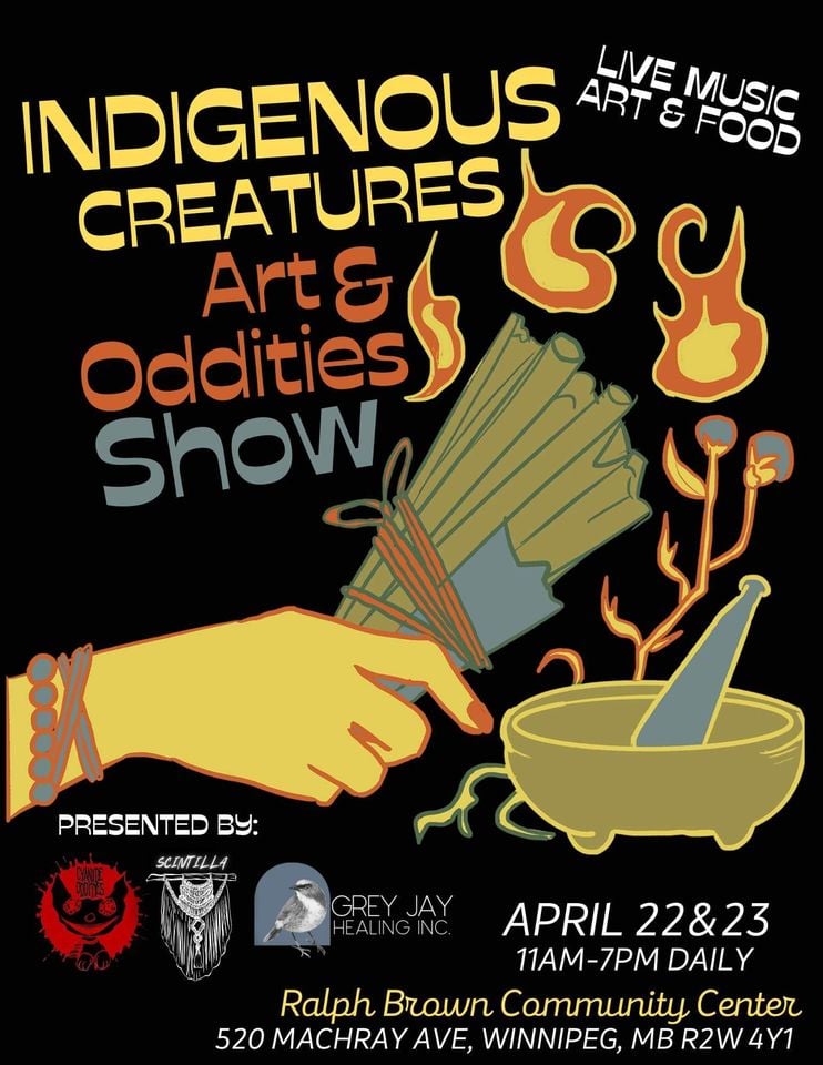 Market will feature local (made in Manitoba) Indigenous art and music, focusing on the weirder side. Included will be beaders, painters, singers, musicians and performance artists, as well as food vendors, draws, and a children’s art corner.